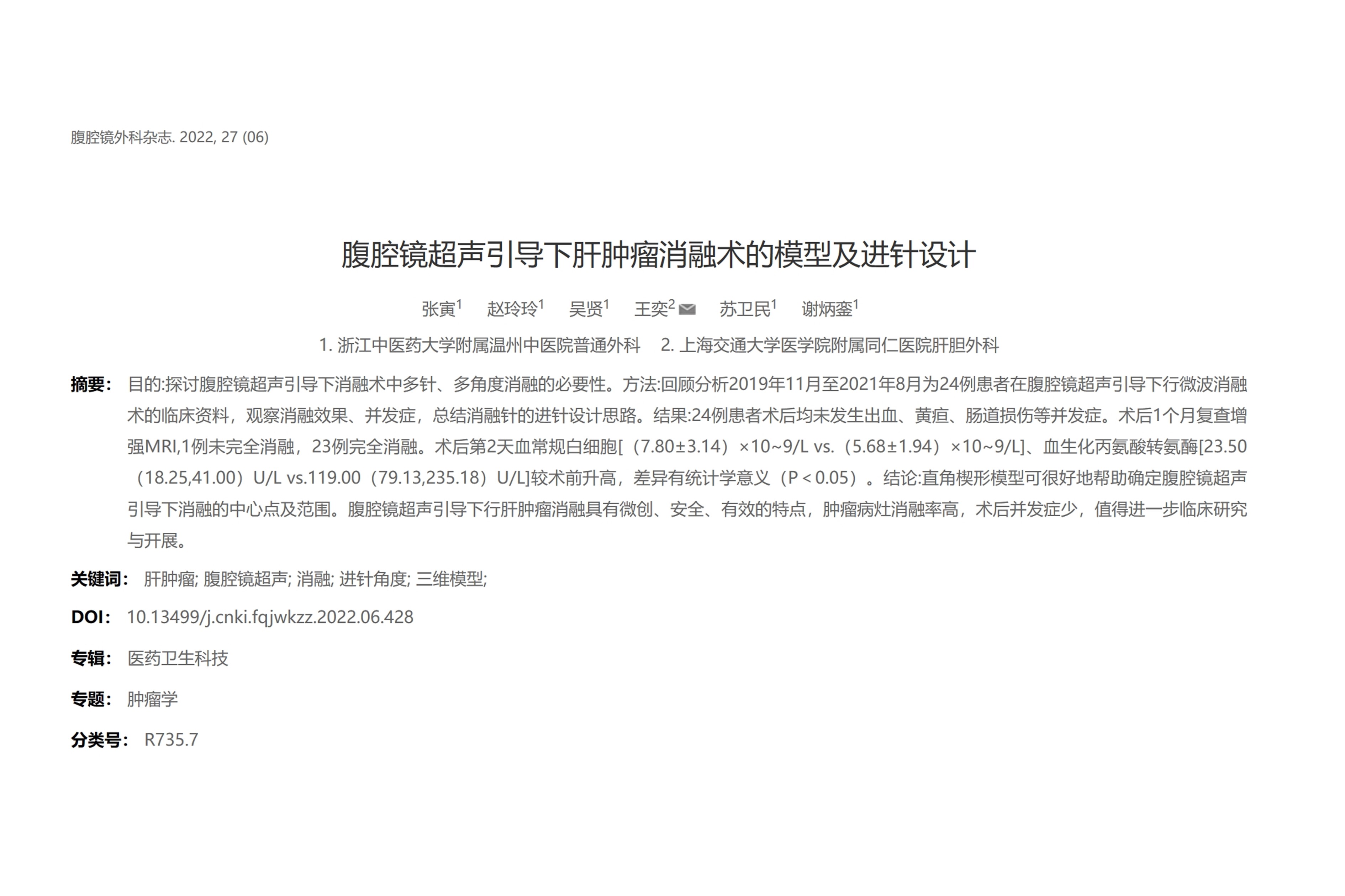 超聲引導下經皮微波消融治療 ≤5cm 乳腺癌是安全的,尤其為老年女性和患嚴重合并癥的患者提供了微創(chuàng)且可耐受的局部治療選擇。